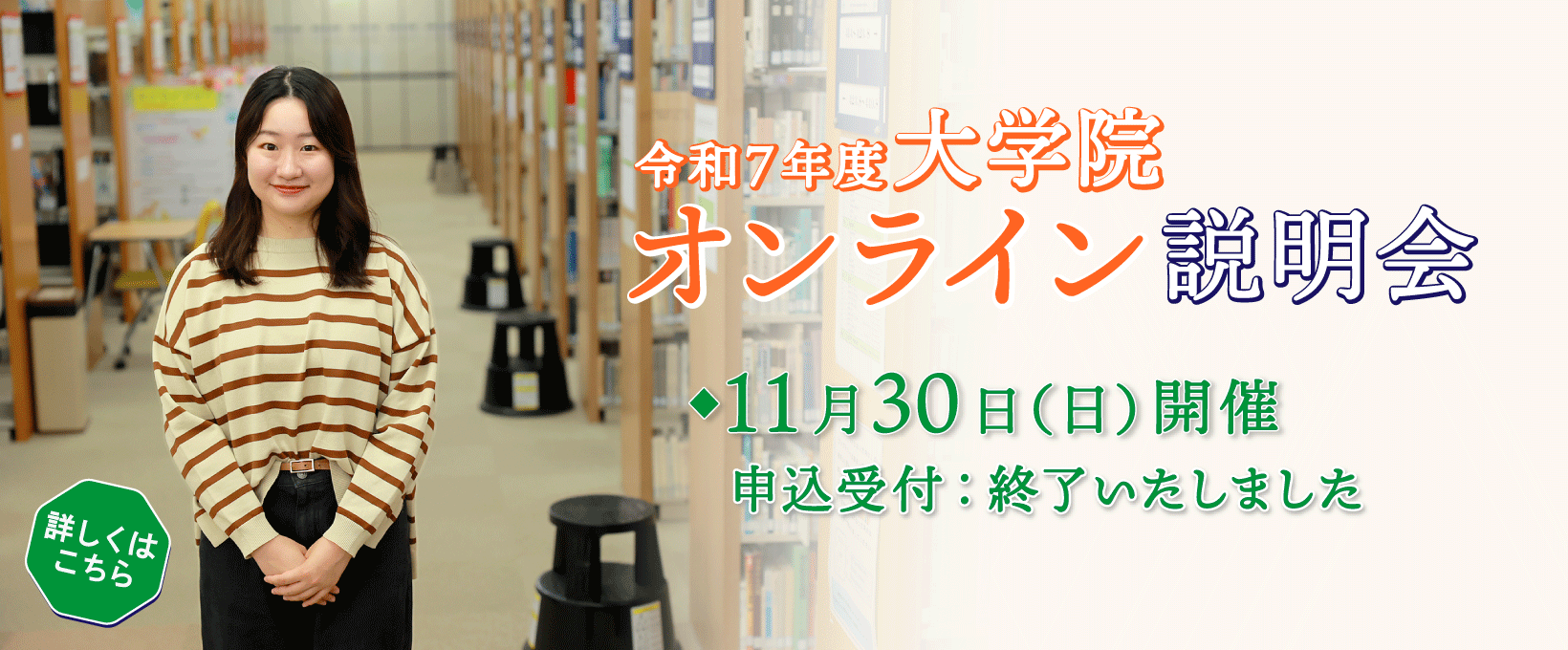 - 2026(令和8)年度大学院学校教育研究科入学者選抜試験(12月日程選抜試験)の願書受付が始まります。(2025年10月31日 教務部入試課大学院入試係)