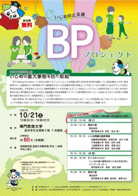BP(いじめ防止支援)プロジェクト 令和5年度徳島大会を下記の通り開催いたします。