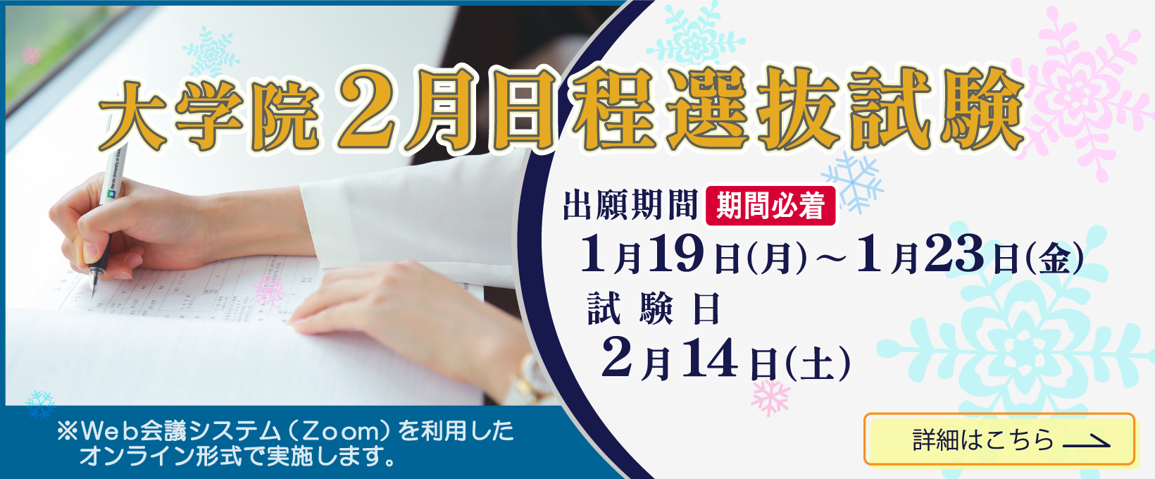 - 2026(令和8)年度大学院学校教育研究科12月日程選抜試験合格者のウェブページでの掲載は午前10時30分頃を予定しています。(2025年12月19日 教務部入試課大学院入試係)
