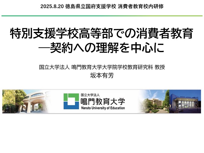 徳島県立国府支援学校 消費者教育校内研修にて、 本プロジェクトリーダー坂本有芳教授が講義を行いました。