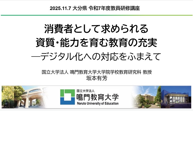 大分県「令和7年度教員研修講座」がオンラインで開催され、本プロジェクトリーダー坂本有芳教授が講義を行いました。