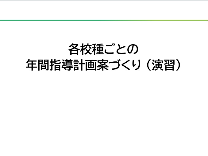 その後、校種毎にグループでの演習活動を実施し、学校での3年間の指導計画を立てました。できるだけ大胆な計画を考え、