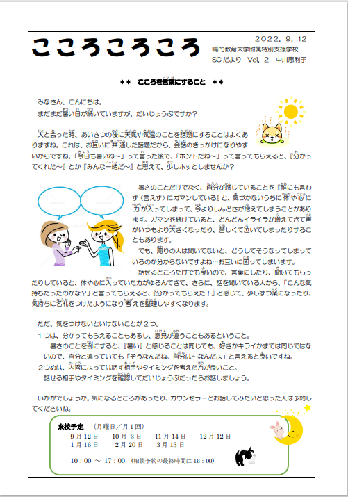 PDFはこちら →SCだより(2022Vol2).pdf(189KB)